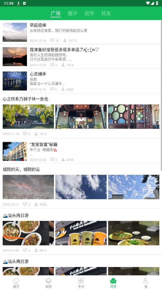 2. 设有多种特色板块,如入学迎新版块助用户了解迎新内容与方法;学生创业版块提供创业机会;各类圈子方便用户交流讨论。