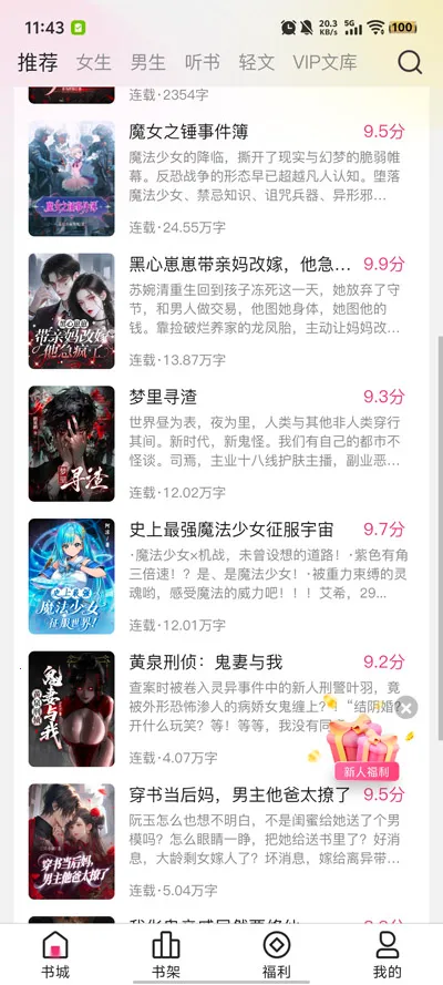 1. 海量正版资源,涵盖都市、玄幻、言情、科幻、历史等多种类型,满足不同读者需求,追更不愁没书看。