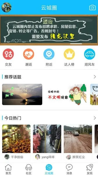 3. 同城动态交流便捷,消息实时提醒,24小时更新热点,能轻松查阅最新社区消息,点开云城圈方便交友。