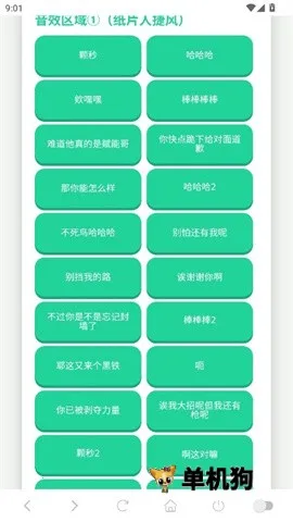 在朋友聚会视频配音或日常消遣时,它能帮你轻松找到合适音效,让欢声笑语不断。其功能强大,有优质语音素材,包含网络上最受欢迎的经典语录,还定时更新语音保持新鲜感。并且按照不同主题和风格细致分类,方便你根据口味快速找到想要的音效。