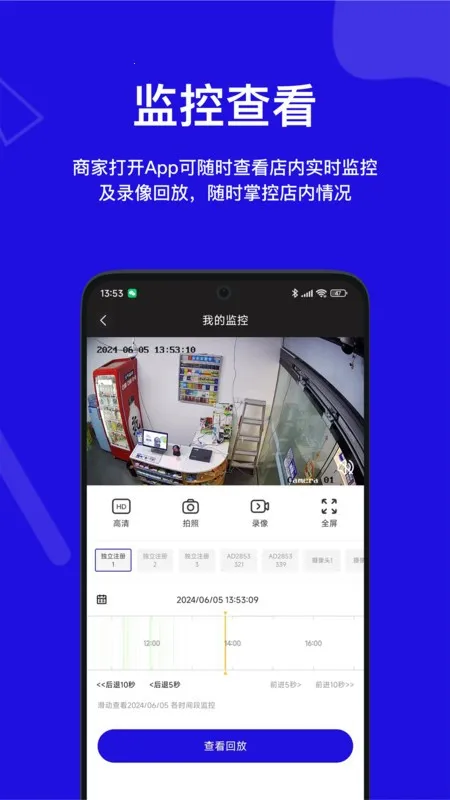 快进商户安卓版是快进时代厦门科技有限公司研发的移动端门店管理后台。能一键开启云值守,高清监控门店,记录画面可回放。还能管理营业数据、商品库存等,助力商户降本增效,经营更轻松。