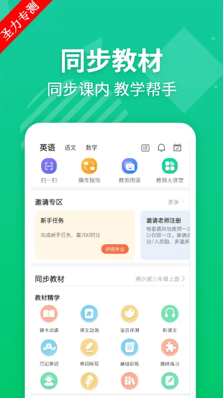 1. 教学资源丰富且同步主流教材,内置海量优质教研资源,与湘少版、湘鲁版、人教版等教材同步,能减轻老师负担,助力精准智能高效教学。