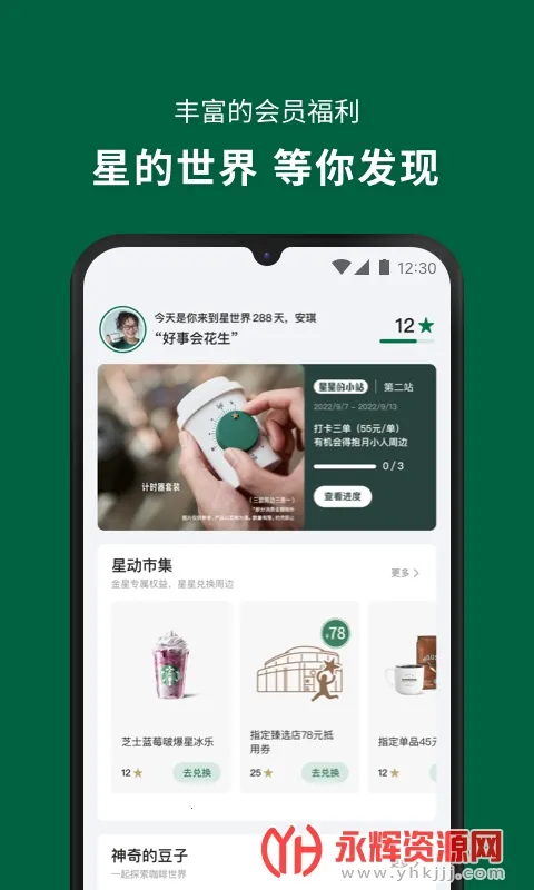 如果你想了解星巴克中国总部相关信息,星巴克官方版 app 是个不错的选择。它能随时提供最新官方活动,让你享受多重积分活动。启动应用授权位置后,自动推送周边门店及优惠。首页有啡快与专星送等服务入口,可按需选择。进入会员中心能参与积分兑换、星星收集等福利。它还能关联星礼卡,轻松移动支付、查看消费记录、管理卡片。虚拟星享卡出示二维码就能累计星星换好礼。精确发现门店位置,及时获知新品和推广活动。能快速找到附近门店并指引路线,还有签到功能。可在线点餐,到店就能取饮品,还有网络订餐服务,能定制喜欢风格。一键注册登录,累积星星免费换更多好礼,带来诸多便捷,快来下载体验吧。
