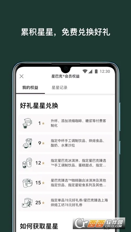 3. 进入会员中心可参与积分兑换与星星收集等专属福利活动,还能关联星礼卡,即时移动支付、查看消费记录、管理卡片。