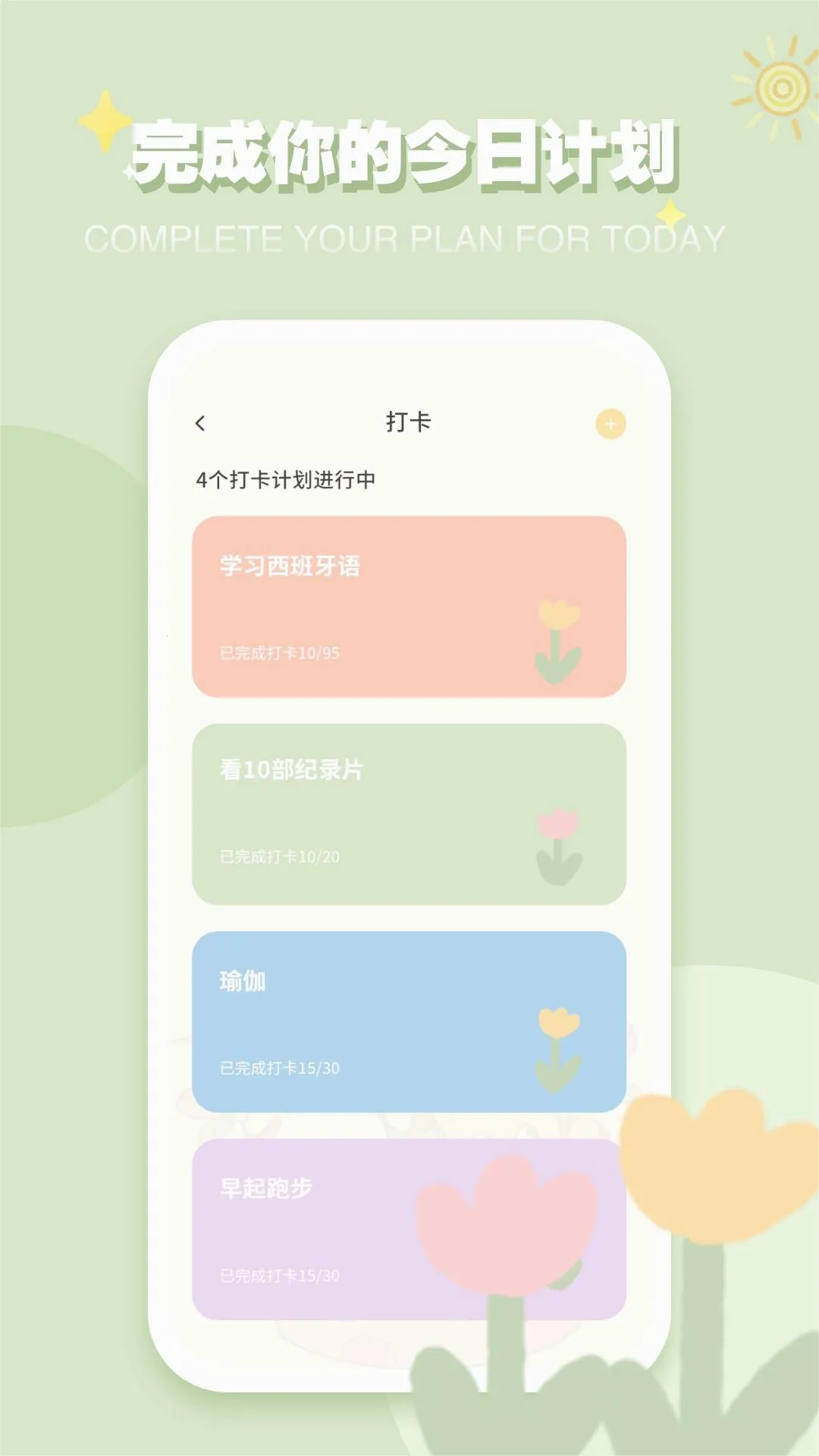 2. 助力养成自律:通过打卡与计划管理功能,帮助用户养成自律习惯并追踪完成进度。