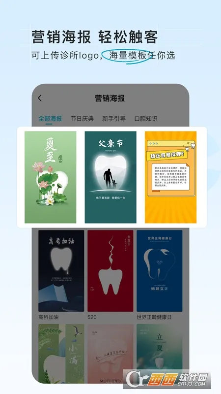 服务贴心周到:提供低价保护,19点前下单当日发货(顺丰物流),还有营销海报轻松触客,可上传诊所logo,海量模板任选。