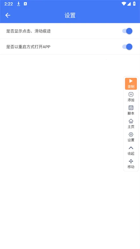 3. 自动录制:点击新建录制器或悬浮窗的录制按钮即可开始录制,支持自动识别点击、长按、滑动等手势,快速生成脚本。