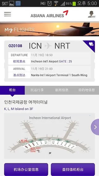 韩亚航空APP功能超齐全,能满足你对韩亚航空服务的各种需求。它有航班预购预定查询、提前订座值机登机牌查询等诸多实用功能。不管你是想查询航线出发地达票价,还是进行里程查询、使用移动会员卡,亦或是了解新闻活动、使用优惠券、逛机内免税店等,它都能搞定。这个APP为用户打造了随时随地可预订机票的便捷平台,出行更轻松。遇到问题还能随时与后台工作人员取得联系获取帮助。页面简洁操作简易,一次使用就能熟练掌握。它还会结合出行信息推荐合理航班预订。结算也方便,在中国地区网站移动设备中可选择人民币或韩币结算,支付方式多样。总之,韩亚航空APP能全方位解决你的出行需求,让你的韩亚航空出行之旅顺畅无忧。