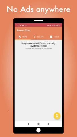 屏幕常亮助手app能轻松解决手机自动熄屏的问题。它功能强大,操作简单。开启屏幕常亮功能后,屏幕会一直保持亮起,不受系统自动锁屏限制。你还能自定义超时设置,想让屏幕亮多久都行,甚至能设为永不息屏。它有智能切换功能,会根据设备电量或使用状态自动调整屏幕超时设置。启用自定义超时时会有通知提醒,方便随时切换回系统默认设置。软件运行时占用内存少,不会让手机卡顿。使用场景广泛,看视频、导航、阅读,双手不方便点击屏幕时用它超方便。设置方法也不难,进入软件先点击PROCEED授予权限,然后返回主页,点击右下角灯泡图标按钮,打开后选Always始终保持屏幕打开状态就行,重启手机后就一直亮屏啦,想恢复自动锁屏再点一下灯泡图标变成有斜杠的就行。有了它,就能免除手机自动熄屏困扰,随时享受常亮屏幕的便利。