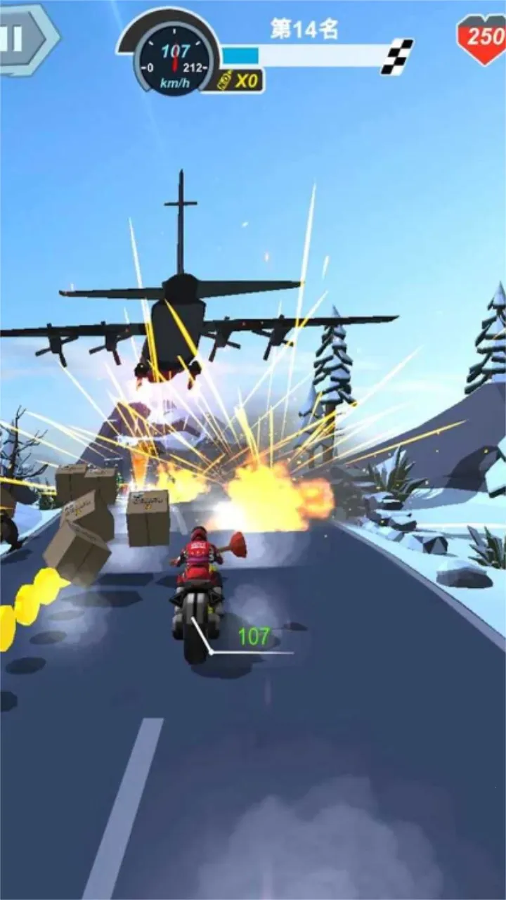 3. 丰富摩托与多样武器任选,满足不同战斗与竞速需求。