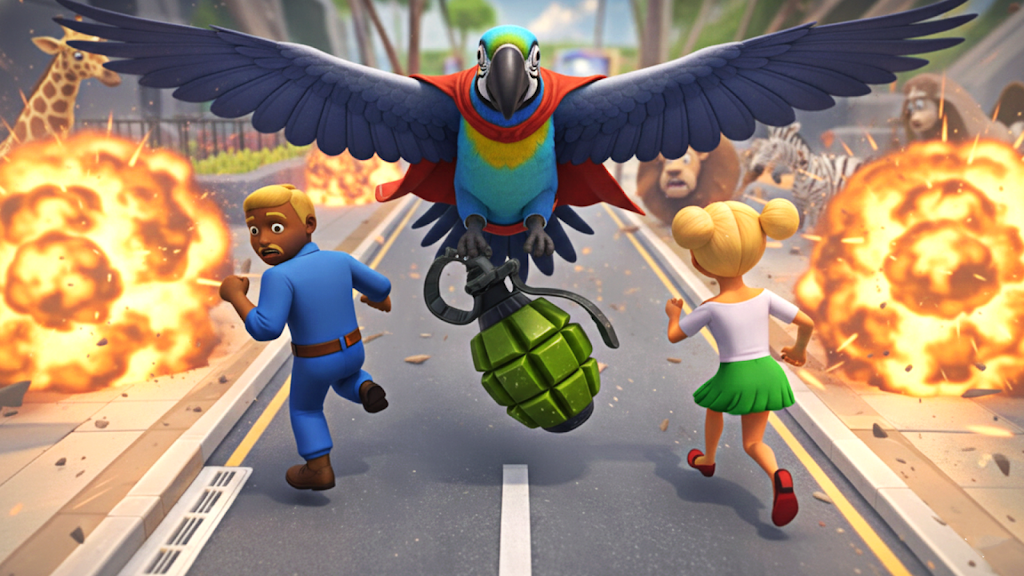 你想体验当一只调皮鹦鹉的感觉吗?那就来试试这款超有趣的游戏吧!在这里,你将变身鹦鹉,从游乐园中逃离并拯救其他被关押的伙伴。游戏有着各种精彩玩法。你可以用第一人称鸟瞰视角观察世界,感受鹦鹉的独特视野。还有超多幽默风趣的恶作剧任务,像泼水吓唬游客、抢走野餐食物、按响汽车喇叭等,每次捣蛋都充满惊喜。当引发人类追捕时,利用翅膀急速转向逃脱。更能收集太阳镜、侦探帽、领结等酷炫配饰,打造个性时尚造型。而且,公园中每个角色都对鹦鹉行为有真实反馈,鹦鹉还能记住高频词句带来对话惊喜。多场景自由穿梭,隐藏捷径与宝藏等你发现。它操作简单,虚拟摇杆控制移动,单键互动拾取,三分钟就能上手。单局任务时长5 - 10分钟,随时可存档,无需网络无广告干扰,每次进入公园都是全新体验,快来开启鹦鹉视角的欢乐冒险吧!