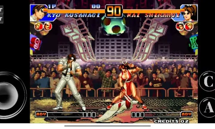 1. 高度还原经典对决:草薙京与八神庵的宿命之战,以及众人与大蛇一族的激烈对抗,原汁原味呈现街机时代的热血战斗氛围。