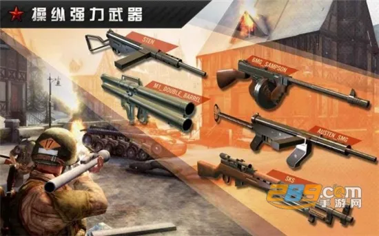 2. 丰富武器系统:多种经典武器任你选择,从M1加兰德步枪到MG42机枪,再到巴祖卡火箭筒等应有尽有,随着任务推进可解锁更强大火力配置。