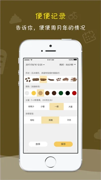 1、记录超灵活:操作简单,点击开始就能记录,全程有呆萌便便小人陪伴,缓解如厕孤独。支持事后补录,不放过任何一次排便记录。