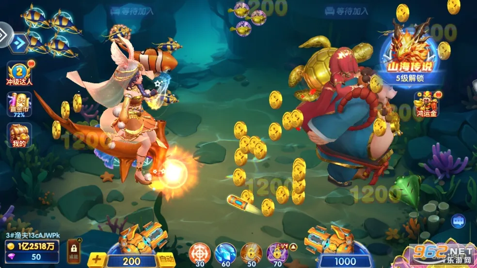 多样鱼类:200鱼种分属5大难度梯队,每种鱼有独立AI行为,捕获策略千变万化。从基础小丑鱼到稀有幻彩鲲鹏,带来丰富捕鱼体验。